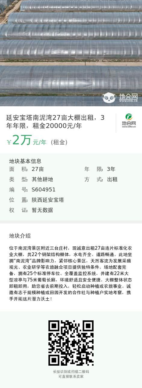 延安宝塔南泥湾27亩大棚出租,3年年限,租金20000元/年